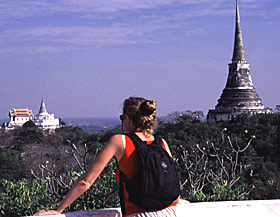 That may be the only western face you see in Phetchaburi these days. Which is kind of strange, considering that in its heyday, the palace complex on the hilltop was the hip place to swing in old Siam. Now, only monkeys do. Ron Gluckman is an American reporter who is based in Hong Kong, but who roams around Asia for a number of publications, such Time Magazine, which ran this piece as part of a package of stories on Hua Hin in August 2002. For the rest of the stories, see also: To return to the opening page and index push here |